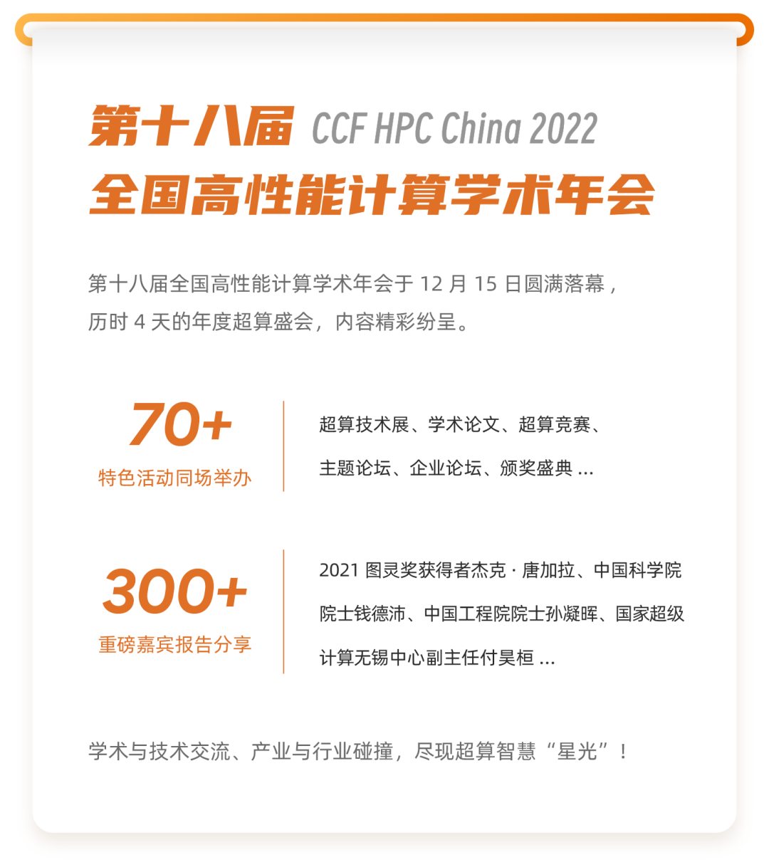 匯聚前沿·榮耀見證 | 第十八屆全國(guó)高性能計(jì)算學(xué)術(shù)年會(huì)(CCF HPC China 2022)圓滿落幕!