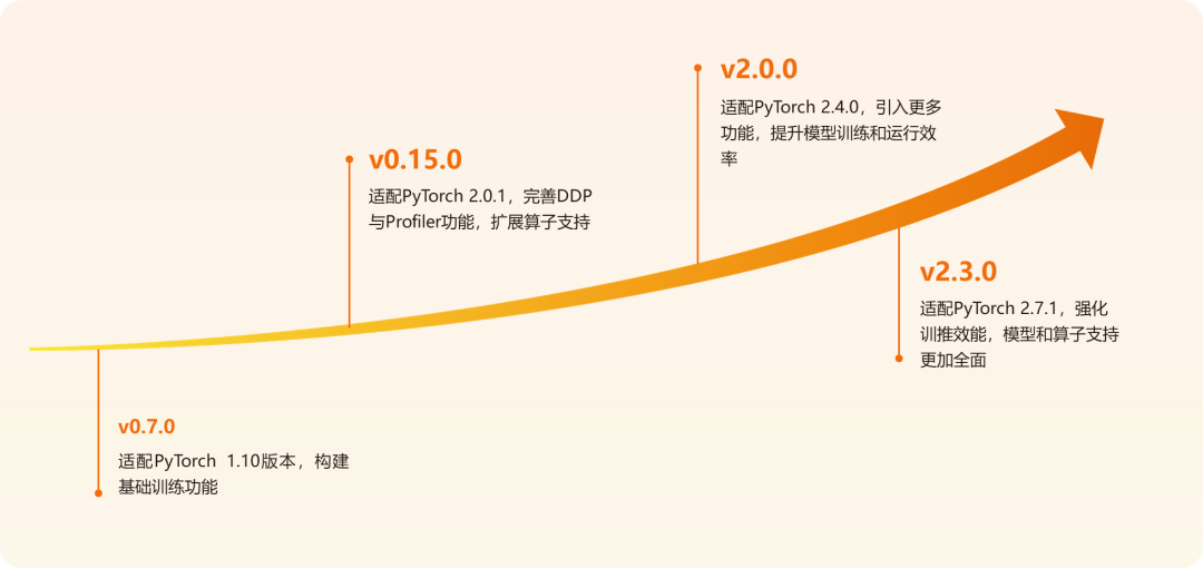 多版本PyTorch適配:適配多個PyTorch主流版本,如:PyTorch 2.7.1、PyTorch 2.4.0、PyTorch 2.0.1等,與社區(qū)同步更新,兼容性強。