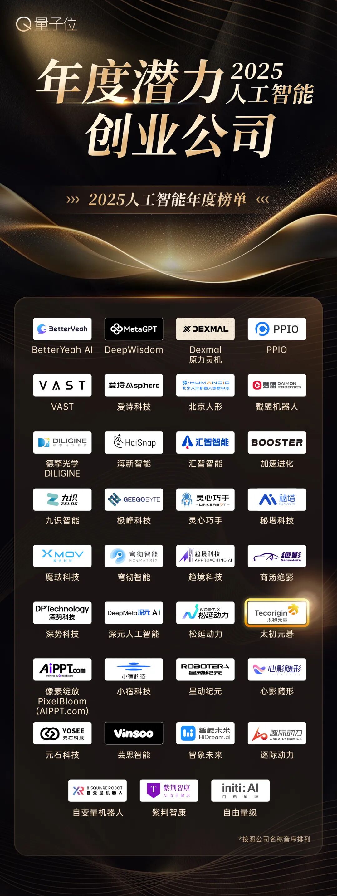 憑借在智能計(jì)算領(lǐng)域的持續(xù)深耕與展現(xiàn)出的巨大成長性,太初元碁榮膺“量子位2025人工智能年度潛力創(chuàng)業(yè)公司”獎(jiǎng)項(xiàng)。這一認(rèn)可,是對(duì)我們發(fā)展路徑與戰(zhàn)略定力的深度共鳴。我們始終認(rèn)為,真正的潛力并非追逐單點(diǎn)的技術(shù)熱點(diǎn),而在于能否精準(zhǔn)回應(yīng)時(shí)代的核心需求。