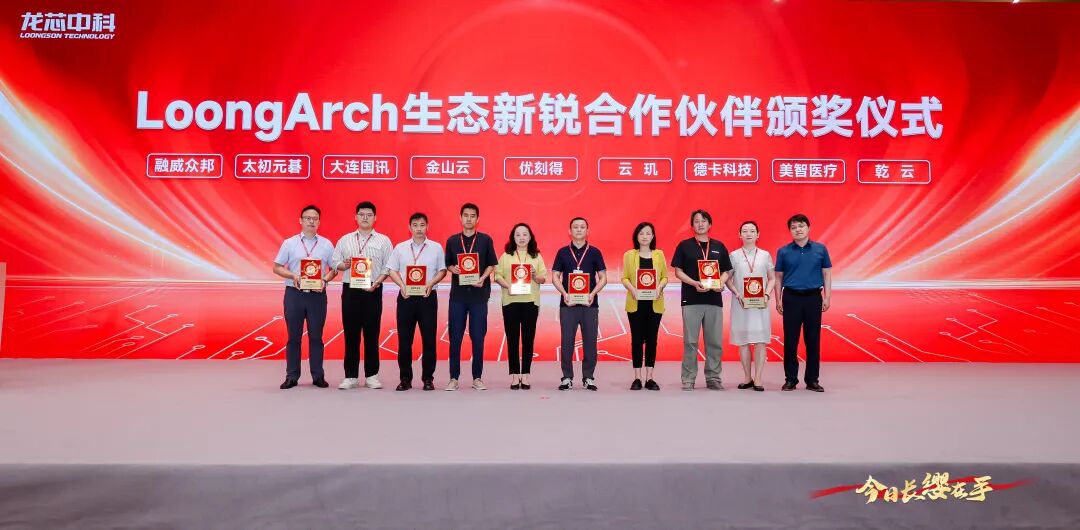 ▲太初(左2)榮獲“LoongArch生態(tài)新銳合作伙伴” 獎項