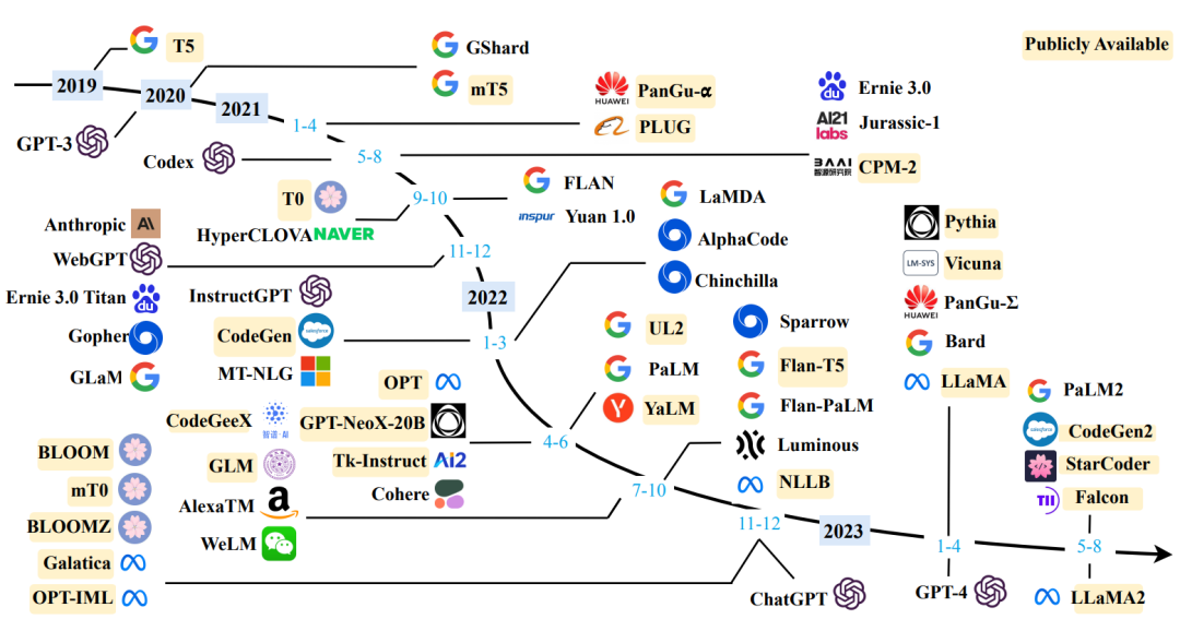 圖4 大語(yǔ)言模型近3年發(fā)展時(shí)間線,引用自[2]