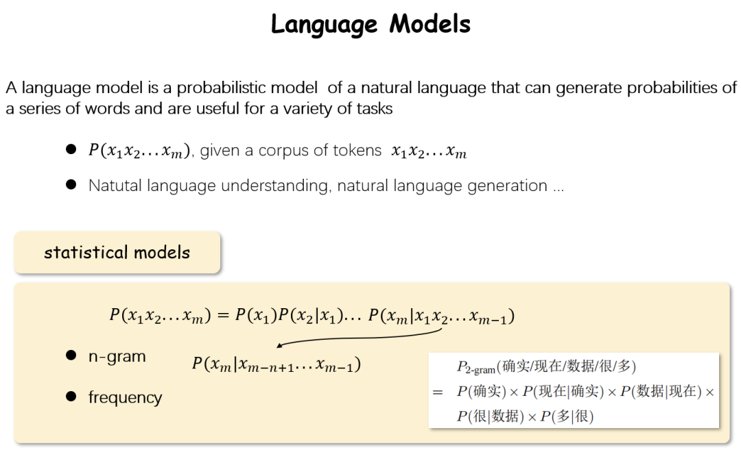 說(shuō)到LLM就不得不提LM(language model語(yǔ)言模型)。語(yǔ)言模型是這樣一個(gè)模型:對(duì)于一句話(由詞組成的序列),它能夠計(jì)算出這句話出現(xiàn)的概率。為了讓模型給出這樣的概率P,最簡(jiǎn)單的方法就是將其用概率論中的方法進(jìn)行展開,這樣只要想辦法得到每一個(gè)P(xm|x1x2...xm-1)即可。這樣從另一個(gè)角度來(lái)看,如果我們可以找到一個(gè)模型:它能夠計(jì)算P(xm|x1x2...xm-1),那么它就是一個(gè)語(yǔ)言模型。