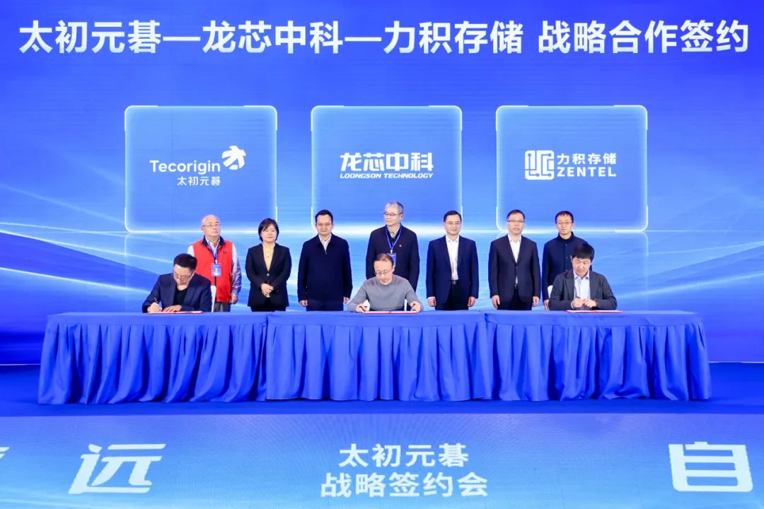龍芯中科副總經(jīng)理范寶峽、力積存儲(chǔ)總經(jīng)理于曉及太初元碁CEO楊晉喆作為代表上臺(tái),進(jìn)行了戰(zhàn)略產(chǎn)業(yè)合作簽約,三方將共同圍繞行業(yè)大模型共建、人工智能基礎(chǔ)設(shè)施建設(shè)、智算中心布局謀劃、產(chǎn)業(yè)智能升級(jí)等領(lǐng)域進(jìn)行創(chuàng)新共研和融合孵化,自主自強(qiáng)自新,開展高質(zhì)量、深層次、全方位的協(xié)同合作,實(shí)現(xiàn)資源和優(yōu)勢互補(bǔ),共同探索數(shù)智化轉(zhuǎn)型之路。